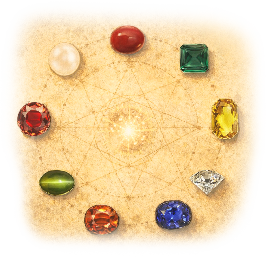 According to Puranic literature, the Navaratna (nine gems) originated from the body of the demon Bala during the Samudra Manthan. Each gem emerged carrying the essence of a planet.